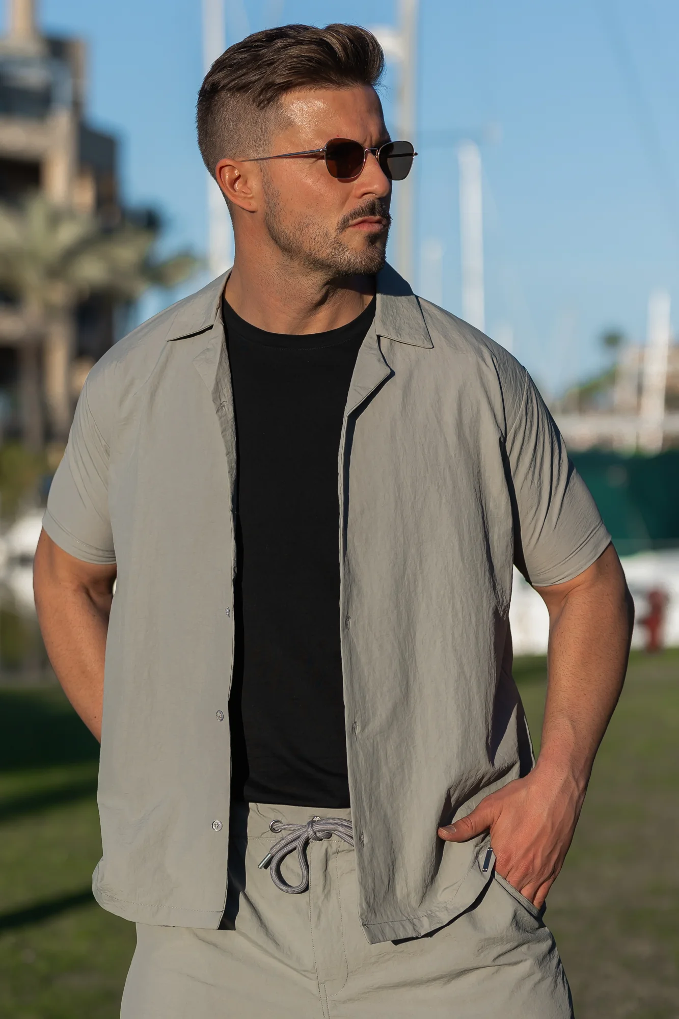 Monaco Crinkle Textured Poly Cotton Shirt - Silver