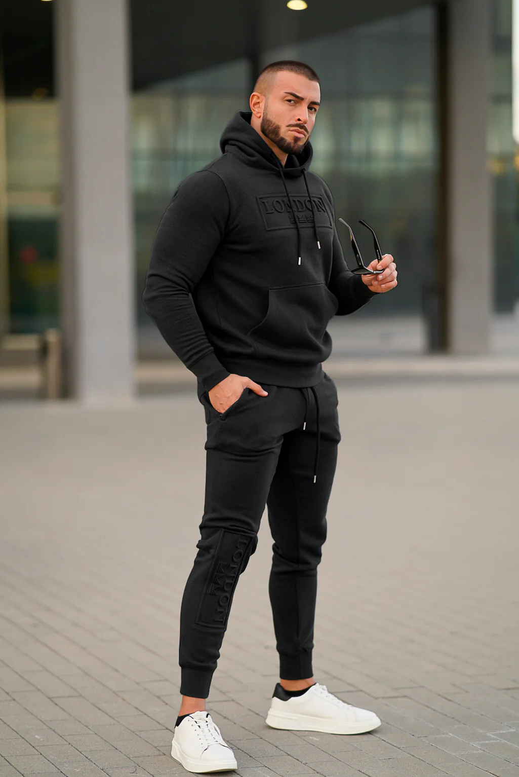 Embossed Cotton Hoodie - Black